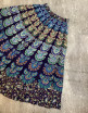 A maxi skirt from Jaipur, India, featuring block prints of elephant and peacock motifs.
